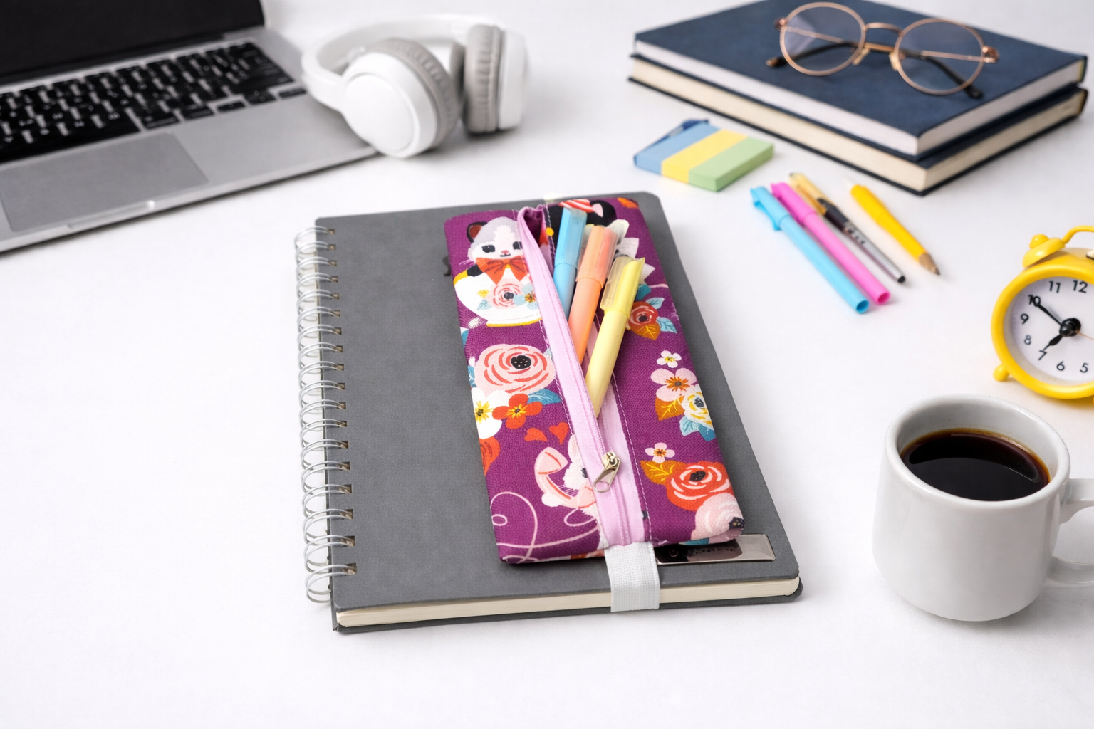 BloomCat Dijital Baskı Lastikli Defter Üstü Kalemlik