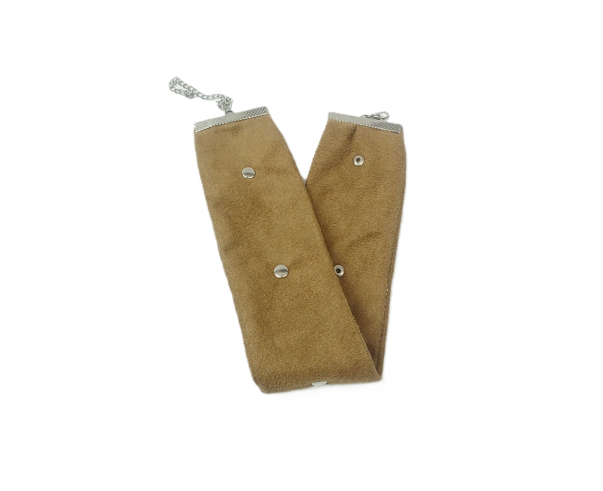 Camel Metal Detaylı Süet Choker Kolye – 4 cm