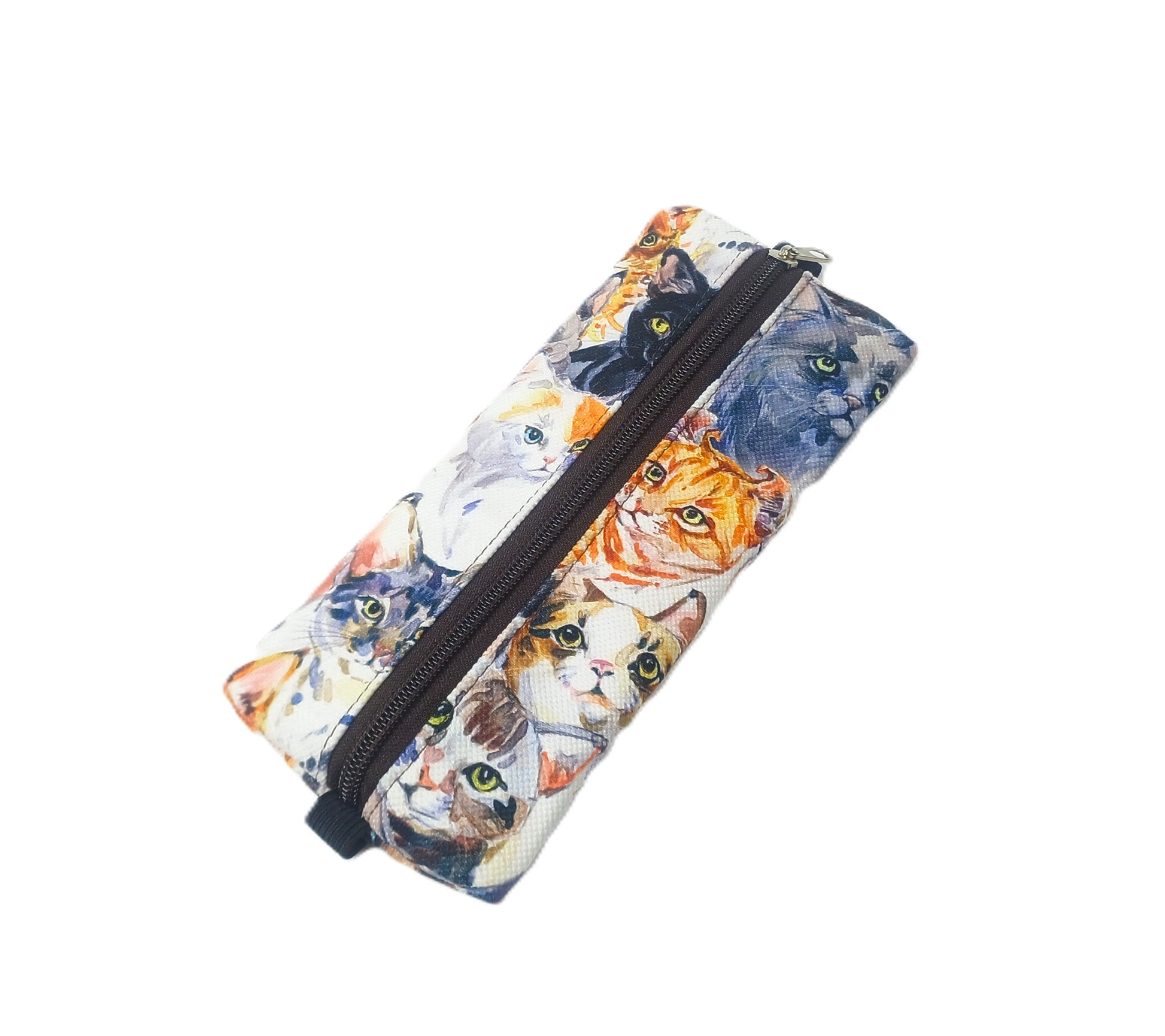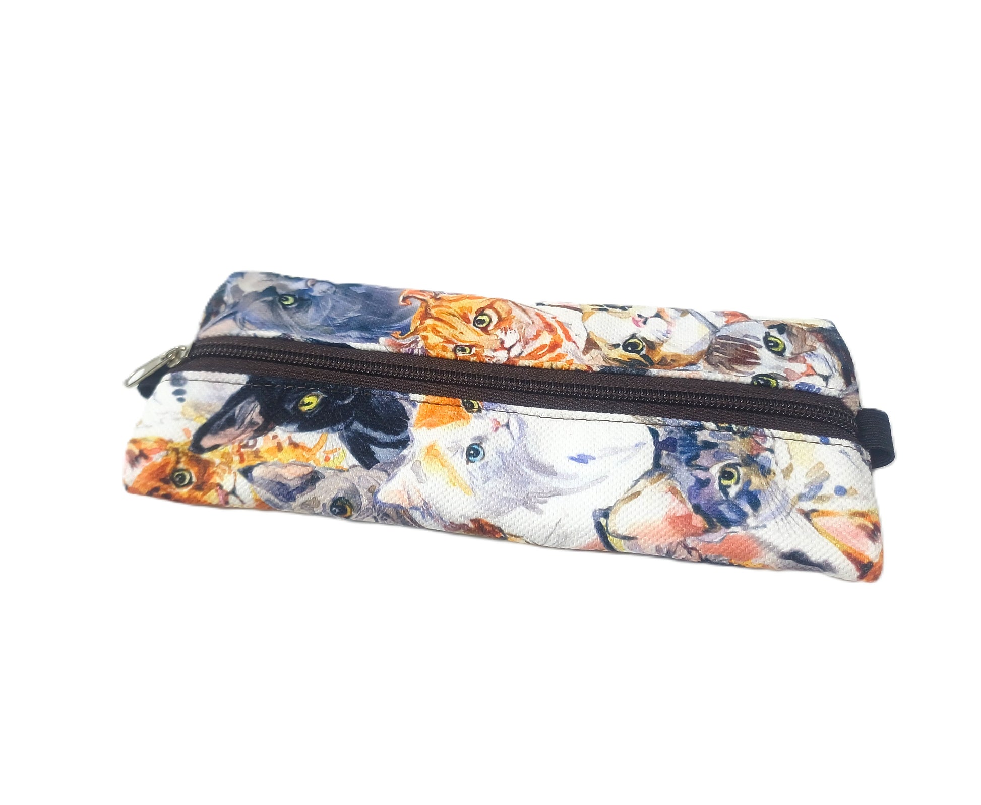 Renkli Kedi Desenli Kumaş Kalemlik – Minimal Lastikli Tasarım