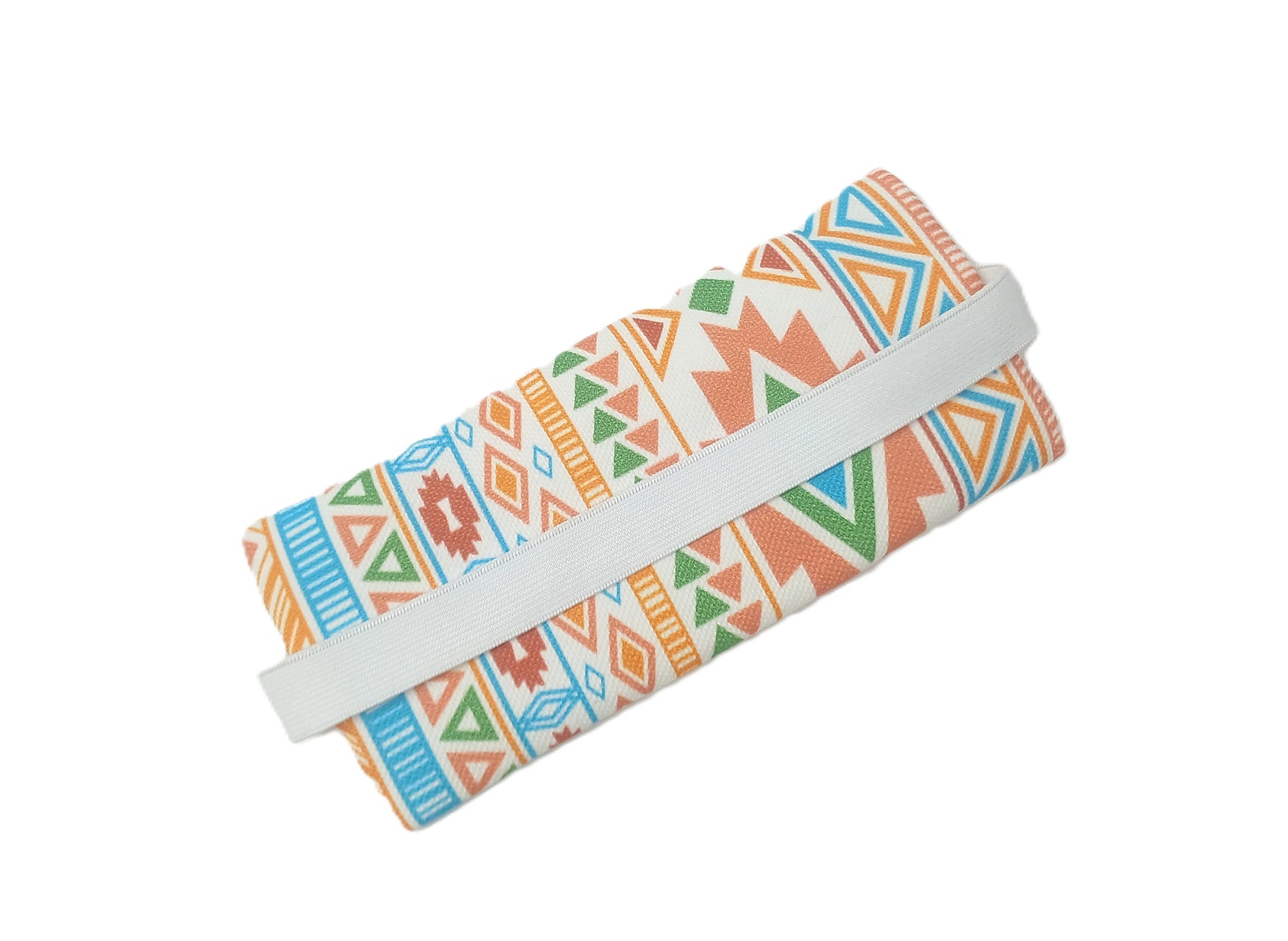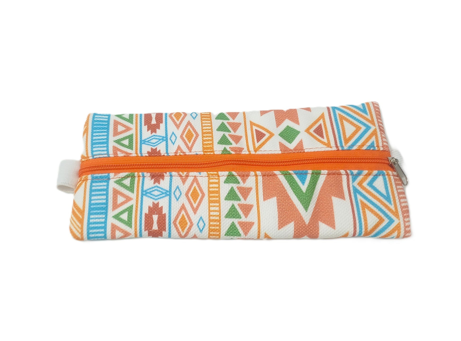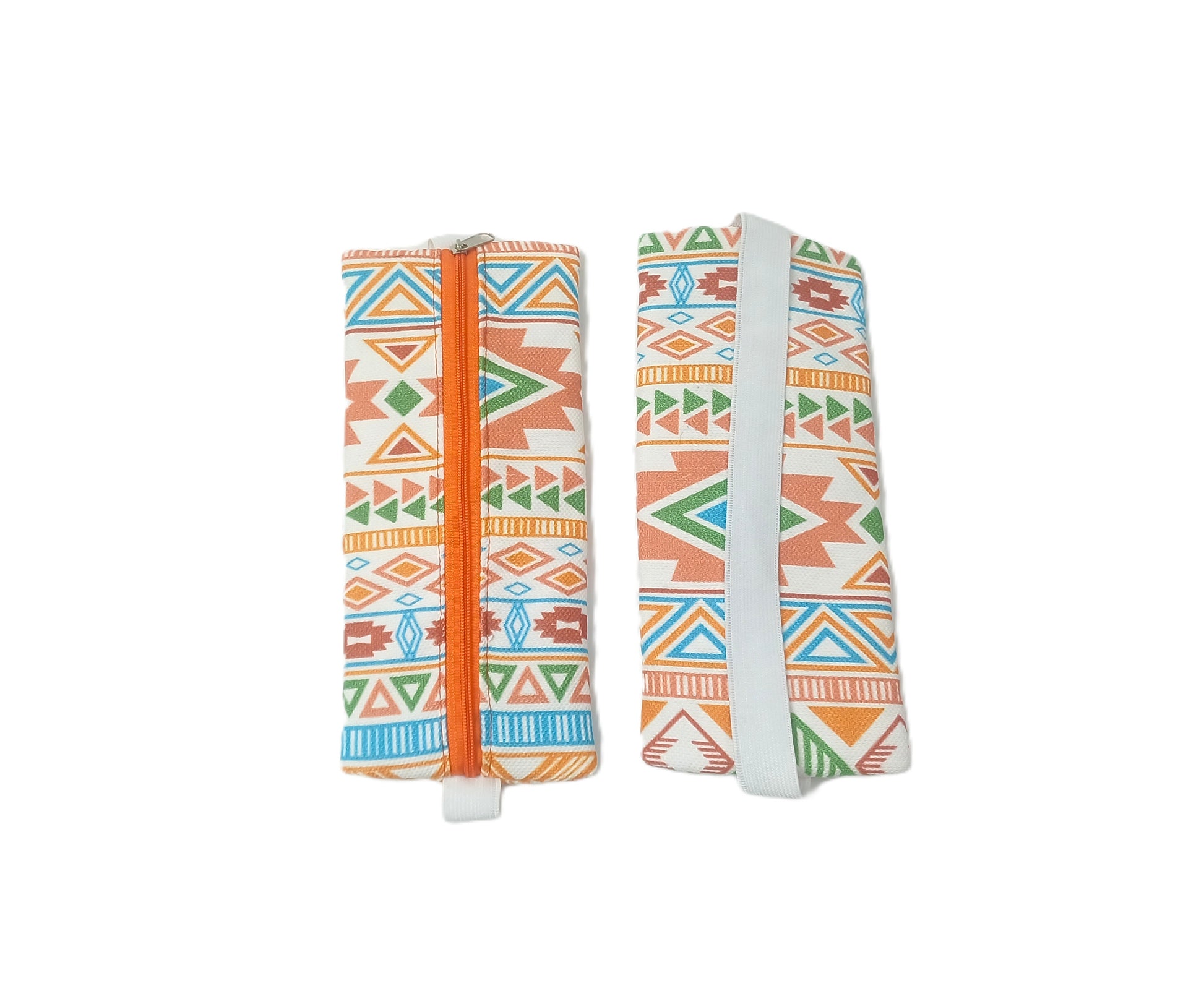 Turuncu Etnik Desenli Lastikli Defter Üstü Kalemlik – Dijital Baskılı Kumaş