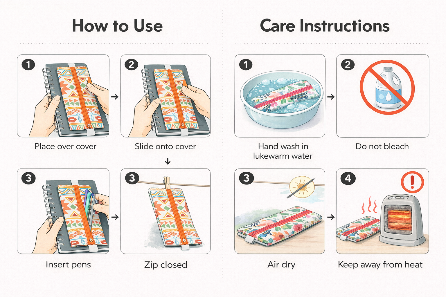 Beyaz renkli geniş lastiği sayesinde defter kapağına kolayca takılır ve kullanım sırasında sabit durur. Fermuarlı bölmesi; kalem, fosforlu kalem ve küçük kırtasiye malzemelerini güvenle taşımanıza olanak tanır.
