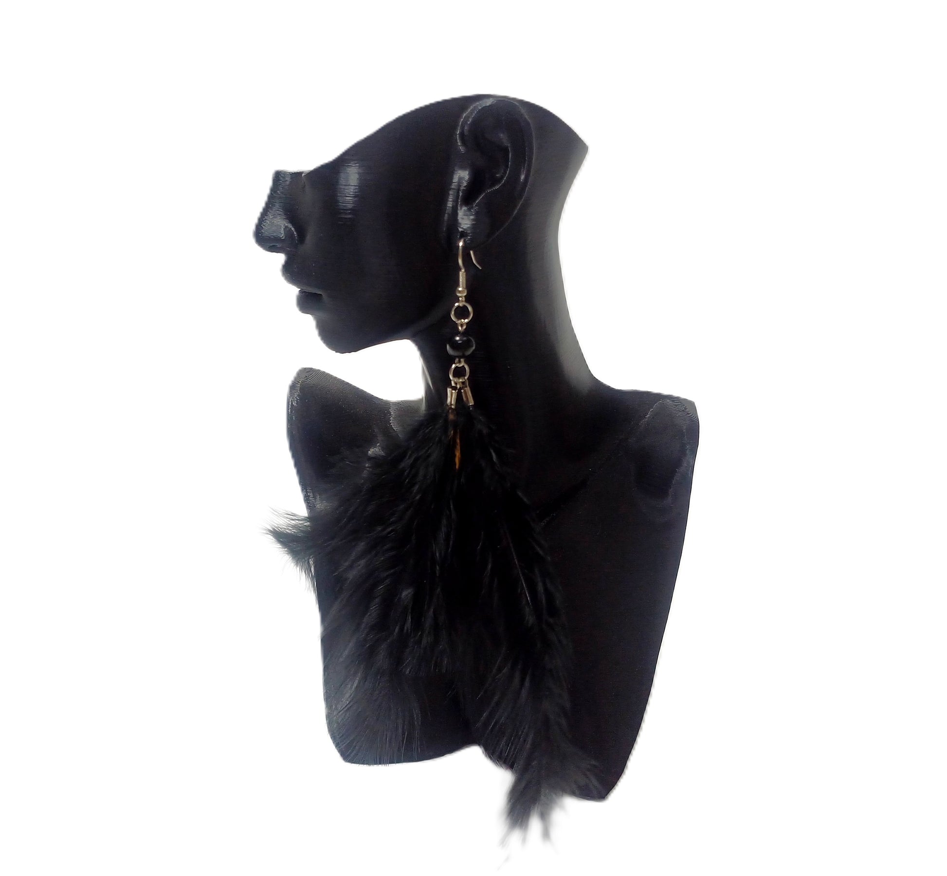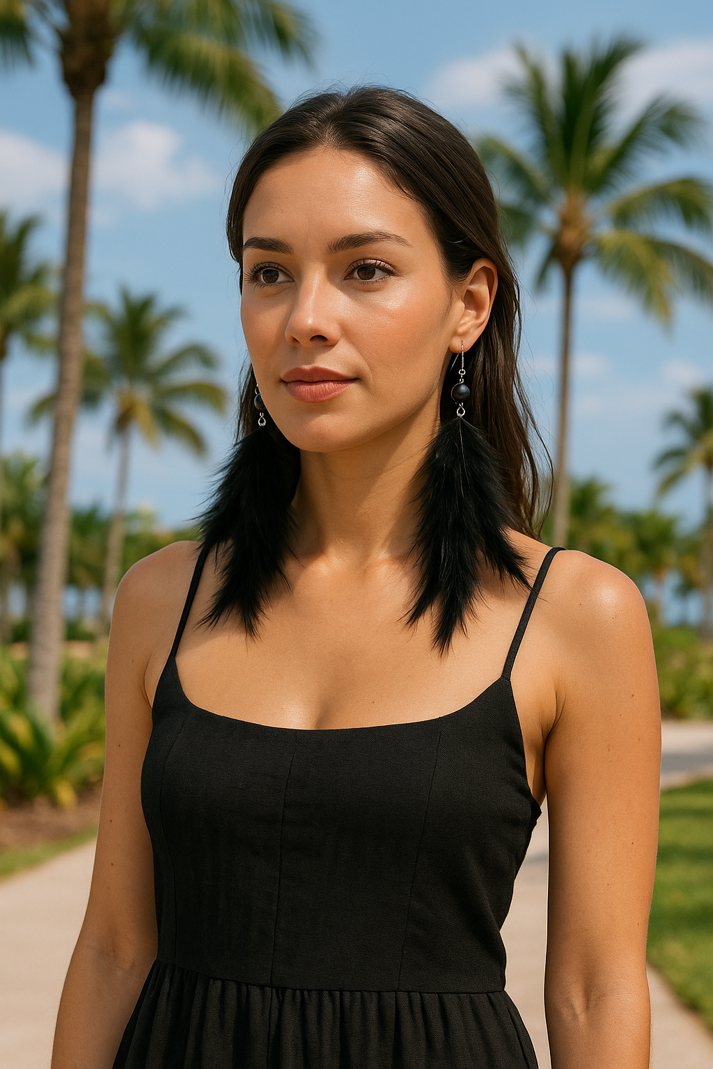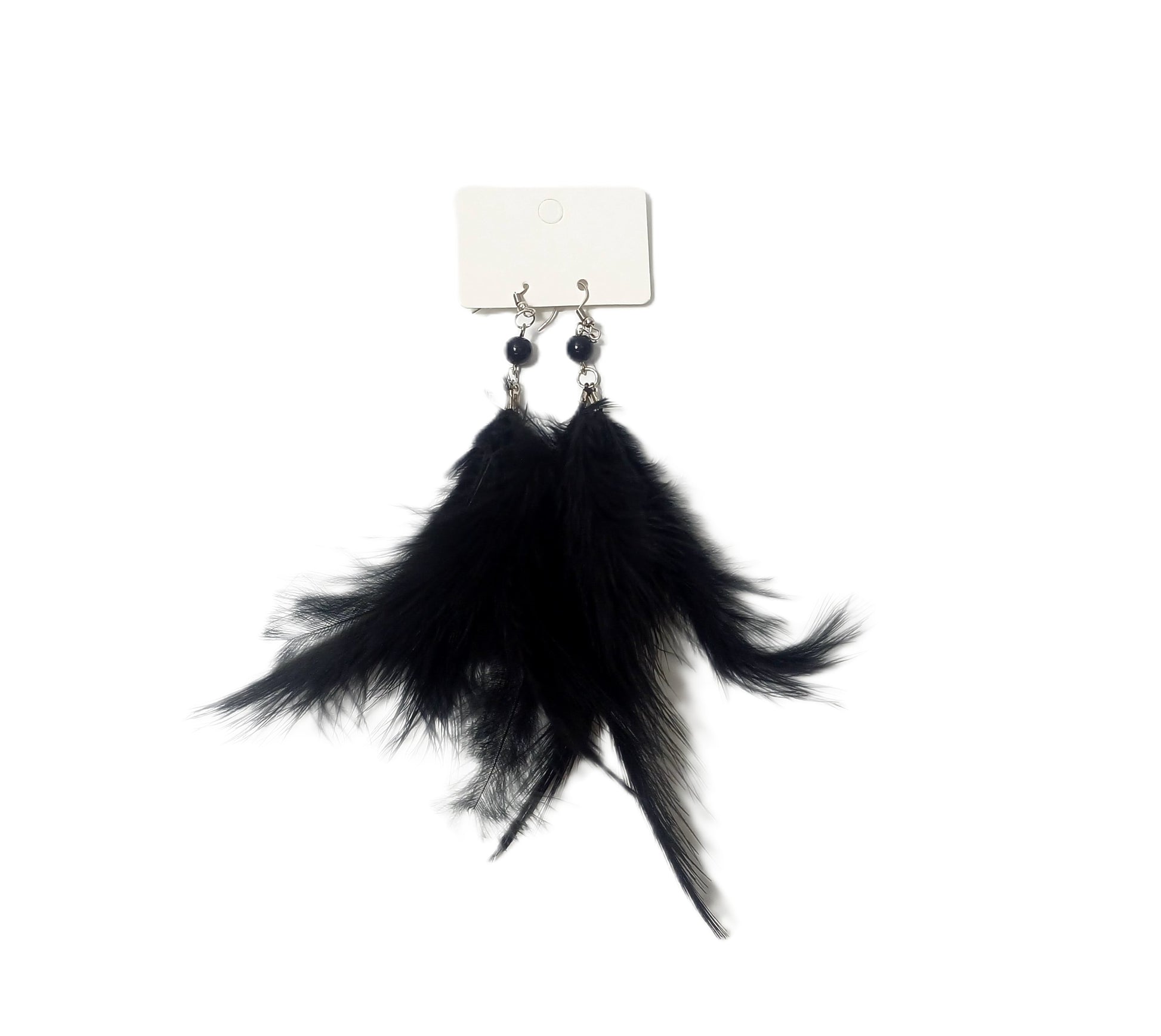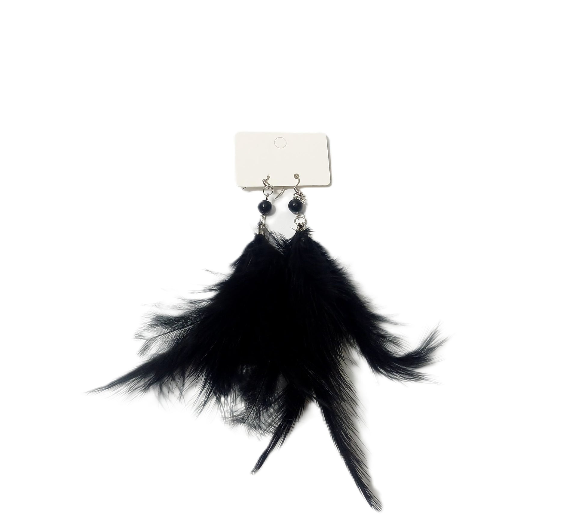 Güçlü ve zamansız bir stil sunan siyah tüy detaylı küpe, sade ama iddialı bir görünüm arayanlar için tasarlanmıştır.