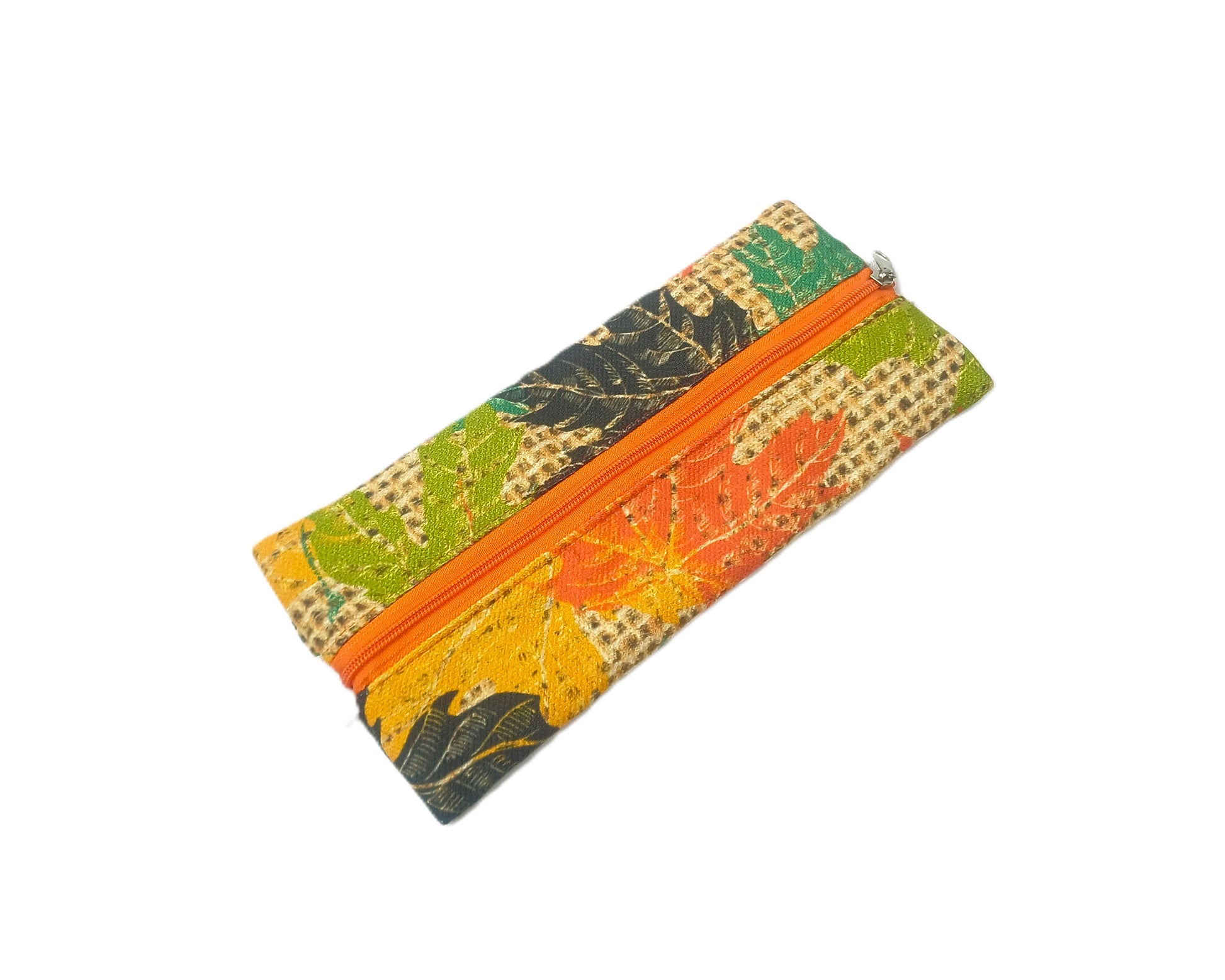 Dijital baskı kumaştan üretilmiş, içi polyester astarlı fermuarlı kalemlik; defter ve ajandalarla birlikte kullanıma uygun şekilde tasarlanmıştır.